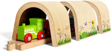Ta vsestranski tunel za lesene vlakce zlahka poživi vsako progo. Uporabite ga lahko kot preprost raven prehod z obratom za 180° ali pa združite več kosov in ustvarite gladek lok – idealno tudi za dolge ukrivljene tire. Zaradi gladke površine in zaobljenih robov je varen ter prijeten na otip.
