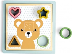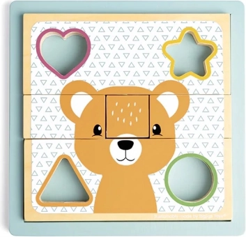 Ta vsestranska lesena sestavljanka je na prvi pogled igra razvrščanja, ob natančnejšem pregledu pa razkrije svojo drugo plat – sestavljanko s presenetljivimi podobami. Obrnite posamezne koščke, jih vstavite v prave izreze in sestavite prisrčnega medvedka ali lisico. Zaradi kombinacije lesa in prijetnega silikona so koščki enostavni za rokovanje in zdržijo tudi zahtevnejše otroško ravnanje.