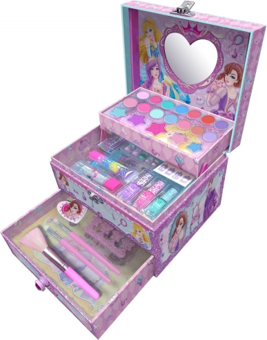 Kozmetični kovček je več kot le komplet ličil; je doživetje, ki spodbuja kreativnost in zabavo. Izdelano z mislijo na varnost otrok, primerno za deklice od 6 let.
