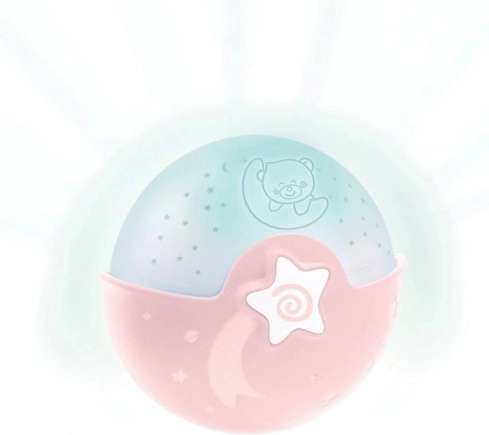 Projektor se vklopi s pritiskom na gumb »ON«. Prikazuje barvne zvezdice in predvaja 6 različnih melodij ter 3 zvoke narave. Poleg tega ima nastavljivo glasnost, ki jo lahko nastavite na: glasno, tiho ali izklopljeno. Samodejni izklop.