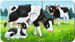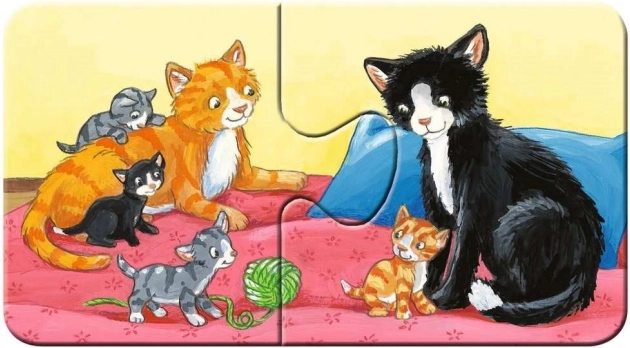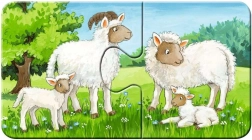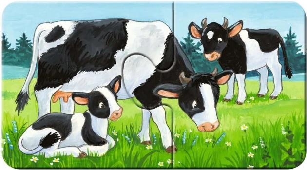 Otroške sestavljanke s čudovitimi slikami, posebej ustvarjene za najmlajše otroke. Robustni, čvrsti kosi so izdelani iz posebej debelega kartona in pri otrocih spodbujajo razvoj motorike, zbranosti in domišljije. Otroci lahko sestavijo devet različnih slik iz dveh kosov. Primerno za otroke od 2 let. Dimenzija sestavljene sestavljanke približno 18 × 10 cm
