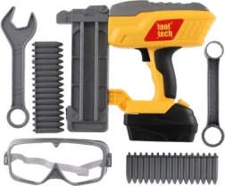 Del seta so dodatki za posnemanje popravil in montaž: zaščitna očala, ključ, dvojni ključ/odprti ključ in plastični žeblji. Baterije se vstavljajo v odstranljiv nabojnik, zato je menjava enostavna in hitra. Celoten paket v škatli je odlično darilo za otroke od 3 let.