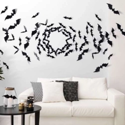 Set vsebuje 3 netopirje z razponom kril 47, 37 in 31 cm, ki vašemu interierju dodajo izrazit “wow” učinek. Sijoča črna izvedba in 3D oblikovanje omogočata ustvarjanje dramatičnih postavitev na steni, oknu ali vratih.