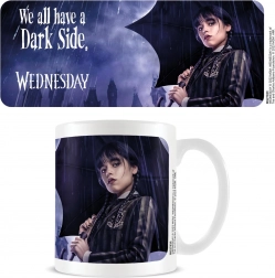 Uživajte v svoji najljubši pijači z izvirno keramično skodelico, navdihnjeno z Wednesday. Minimalističen dizajn z izrazitim napisom »We all have a Dark Side« skodelici doda osebnost in se odlično poda tako v pisarni kot doma.