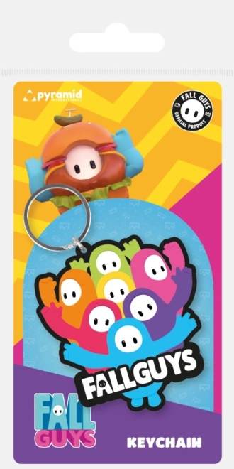 Stilski gumijasti obesek za ključe z licenciranim motivom FALL GUYS in kovinskim obročkom za enostavno pripenjanje. Lahek in trpežen dodatek za ključe, nahrbtnik ali denarnico.