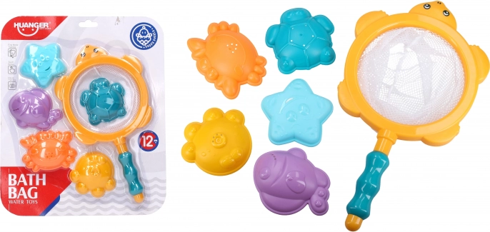 Vsakodnevno kopanje spremenite v veselje. Z barvitimi živalicami z odtočnimi luknjicami otroci enostavno odkrivajo principe nalivanja in pretakanja vode, medtem ko jih mrežica za lovljenje motivira k aktivni igri. Komplet je lahek, varen in idealen za majhne roke.