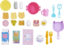 Predstavljamo kuhinjski set Cakey Cat Kitchen za otroke iz sveta Gabinine čarobne hiše. Ta igralna kuhinjica je odličen dodatek k seriji igrač Gabinina čarobna hiša za deklice in dečke, z več kot 20 kuhinjskimi pripomočki in višino več kot 91 cm. Caketkova kuhinja je opremljena s štedilnikom, pomivalnim koritom z odcejevalnikom, 10 kuhinjskimi dodatki in posodo, obešali nad oknom, 9 živili za igro ter hladilnikom s fotografijami Gabine in njenih muck, v katerega lahko shranjujete živila za igro, pripomočke in druge igrače. Čudovita kuhinjica vsebuje tudi veliko figuro mucka Caketka s posebnim stojalom, ki ga je mogoče pritrditi na okno, da lahko Caketek opazuje vaše kulinarične mojstrovine. Pritisnite gumb na Caketkovem stojalu in zavrtite gumbe na štedilniku, da aktivirate več kot 20 zvokov in fraz ter 9 zvočnih efektov kuhanja, 3 glasbene točke in 11 Caketkovih izrekov iz priljubljene serije Gabinina čarobna hiša na Netflixu. Če želite majhno kuhinjico še nekoliko razširiti, je pod štedilnikom polica, zasnovana posebej za pečico Bakey with Cakey Oven (prodaja se ločeno). Caketkov kuhinjski igralni set je nepogrešljiv dodatek za vse oboževalce Gabinine čarobne hiše, ki lahko z njim obujajo prizore iz svojih najljubših oddaj o kuhanju ali pripravljajo lastne kulinarične stvaritve za družino in prijatelje.