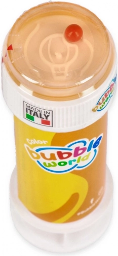 Bublifuk Bubble World 60 ml za otroke od 3 let. Ustvarja veliko trdnih mehurčkov, kompaktna velikost, enostavna uporaba. Kakovosten izdelek iz Italije.