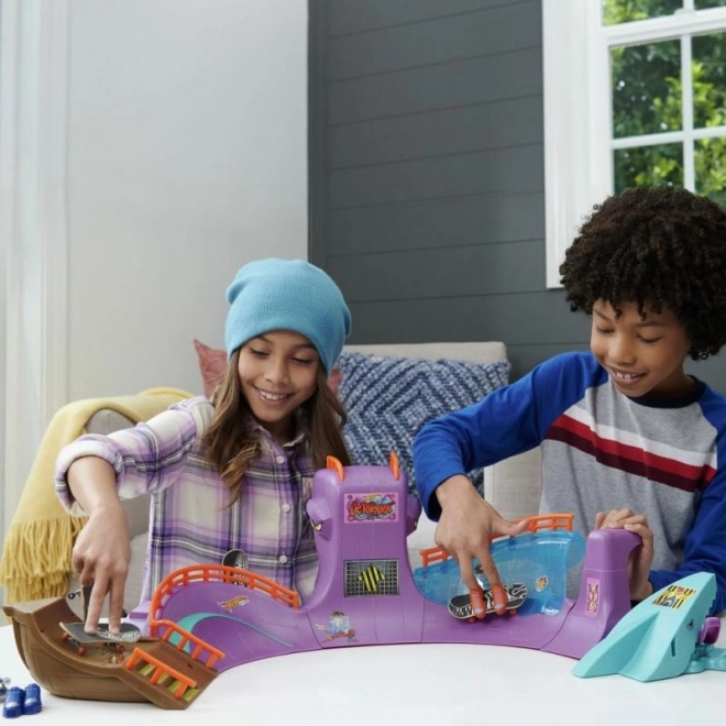 Hot Wheels Skate Octopark je stilski igralni set za fingerboarding. Spustite se z ogromne glave hobotnice in doživite epsko vožnjo, polno ramp, stopnic in presenečenj v obliki morskega psa!