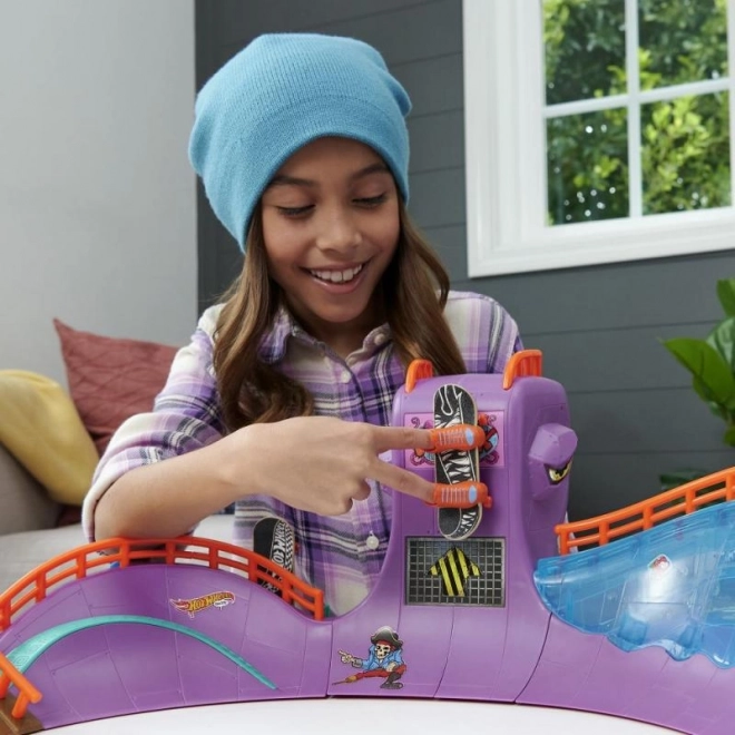 - Uživajte v številnih trikih z Hot Wheels Skate Octopark, tematskim setom s hobotnico, ki ponuja veliko igralnih površin.