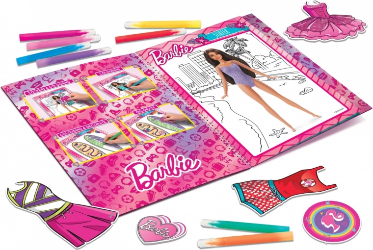 S to Barbie slikarsko knjižico lahko dekleta ustvarijo svoj lasten slog. Kreativni komplet vsebuje številne Barbie modele za oblačenje: