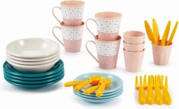 Ta plastična garnitura posode je idealna za vsakogar, ki želi organizirati neformalen piknik ali popoldne na vrtu. 32 delov te garniture vključuje krožnike, desertne krožnike, sklede, skodelice, kozarčke in pribor, vse iz lahke in trpežne plastike. Praktična škatla omogoča enostavno prenašanje in otroci se lahko varno vključijo v pripravo hrane. Škatla pa serve tudi kot postrežna miza.