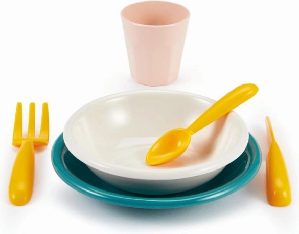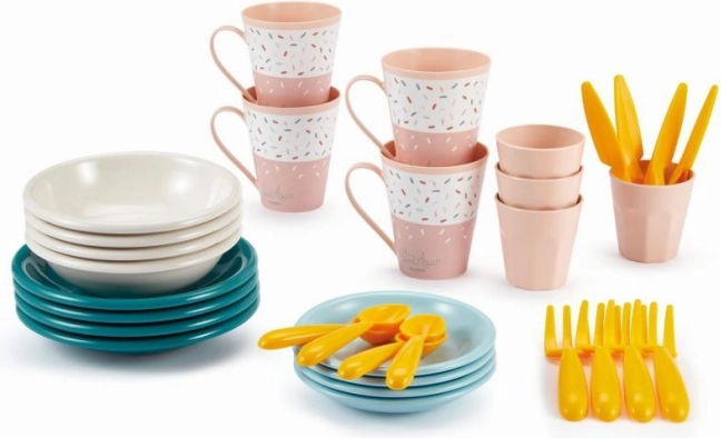 Izdelana iz vzdržljive plastike, ta garnitura je trpežna in zasnovana tako, da omogoča enostavno rokovanje in vzdrževanje, idealno za otroke.