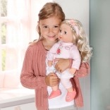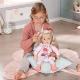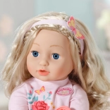 Punčka Sophia iz kolekcije Baby Annabell ima čudovite blond lase, ki jih lahko vedno znova oblikujete. Nosi modni rožnat obroč za lase z metuljastim okrasom, ki se odlično ujema z njenimi rožnatimi oblekicami s cvetličnimi vzorci. Dolge lase ima rada spuščene, kar punčki daje naraven videz. Z njenim realističnim obrazkom in podrobnimi oblačili nudi otrokom odlično priložnost za domiselno igro.