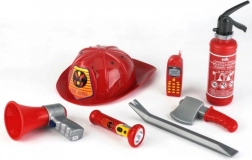 Odkrijte popoln gasilski set za male junake, ki ponuja vse potrebno za igro reševalcev. Set vsebuje 7 kosov opreme, vključno s čelado, gasilnim aparatom, svetilko in baterijskim megafonom, lomilcem, sekiro in mobilnim telefonom. Idealna igrača za otroke od 3. leta, ki spodbuja domišljijo in igro vlog.