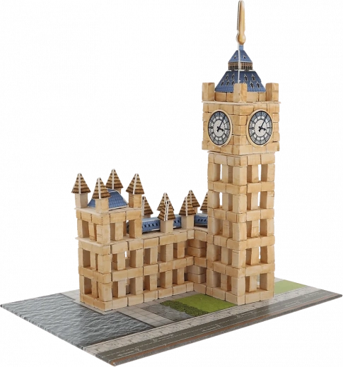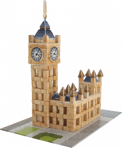 Prave glinene opečnike, lesene plošče in dekoracije dajejo modelu Big Bena realističen videz in trdno konstrukcijo.