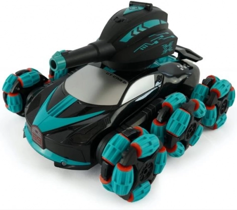Obvladajte teren z DRIVERO dirkalnim RC avtom, ki ne samo da vozi v različnih smereh zaradi svojih 6 koles, ampak ponuja tudi interaktivne funkcije kot so streljanje plastičnih kroglic in učinek izpušnega dima.