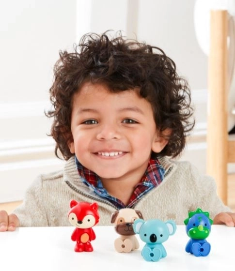 Pripravljeni, pozor, akcija! Očarljive živali iz ZOO Skip Hop se rade pridružijo vsem pustolovščinam, o katerih sanja vaš otrok. Set vsebuje štiri figurice značilnih likov Skip Hop Zoo – mops Preston, lisjak Ferguson, koala Kenzie in dinozaver Dakota.
