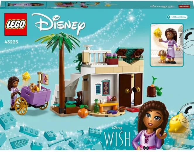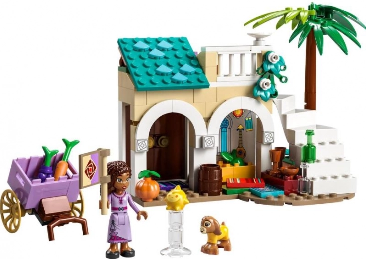 Obišči mesto Rosas z Asho! Razišči ta komplet LEGO Disney, navdihnjen z novim Disneyjevim filmom Želja studia Walt Disney Animation, z Asho, Zvezdo in Valentinom! V mestu Rosas boš našel okusno pecivo, zelenjavo in sadje. Oglej si vse čudovite razstavljene predmete. Pridruži se Ashi in njenim prijateljem med odmorom, preden prispejo novi turisti!