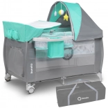 Praktična in varna potovalna posteljica za otroke s stranskim vhodom na zadrgo, nastavljivo višino ležišča, previjalno mizico in bogatim priborom za udobno potovanje. Zahvaljujoč sistemu LockGuard, kakovostni mehki podlagi in kolesom z zavoro je posteljica stabilna in enostavna za upravljanje. Priložena je mreža proti insektom, ročaji za učenje vstajanja in stranski organizator.