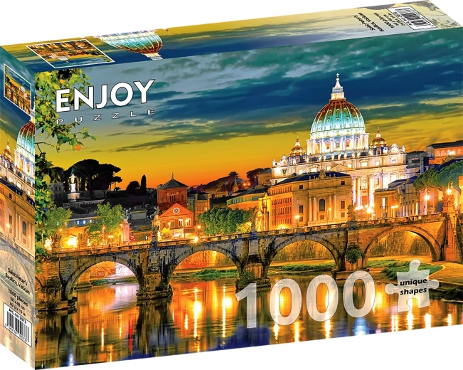 Uživajte v zabavi in sprostitvi s to čudovito sestavljanko, ki prikazuje baziliko svetega Petra v središču Vatikana. Sestavljanka s 1000 koščki ponuja odličen izziv za vse ljubitelje puzzlov. Po sestavljanju se sestavljanka ponaša s skrbnimi detajli in živahnimi barvami, ki bodo lepo popestrile vaš interier.