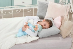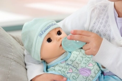 Ko je čas za spanje, ji samo dajte dudko in opazujte, kako zapira svoje rjave oči. Alexander godrnja in klepeta, ko dobi svojo stekleničko. S svojim mehkim tekstilnim telesom je punčka idealna za crkljanje in pomirjanje.
