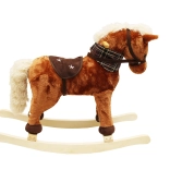 Prisrčen gugalni konj v izvedbi rjavca bo razveselil vsakega otroka. Ima mehak plišast površinski material, stabilni leseni sani in ponuja zvočne učinke, aktivirane s tipko v ušesu. Predalček za baterije je skrit na trebuščku, priložene so 3× AG13/LR44 za takojšnjo uporabo.