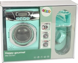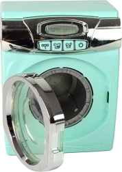 Majhen pralni stroj navduši z realističnim videzom in interaktivnimi elementi – po vstavitvi 3 × AA baterij oddaja zvoke in vrti boben, zato verno simulira pranje. Otroci lahko tako posnemajo odrasle, se učijo domačih rutin in na igriv način razvijajo samostojnost.