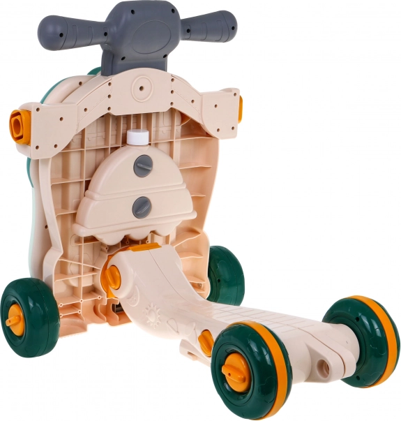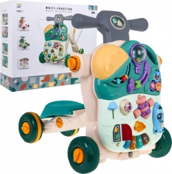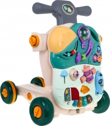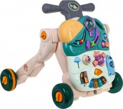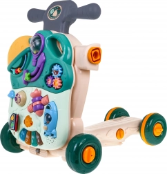 Ta interaktivna igrača 5v1 raste z vašim otrokom in se prilagodi njegovim potrebam. Zlahka jo spremenite iz hojice v poganjalca ali skiro, v trenutku pa tudi v stabilno aktivnostno mizico s senzorično ploščo z vesoljskim motivom. Barvni elementi, gumbi, zobniki in perlice spodbujajo raziskovanje ter podpirajo fino motoriko, logično razmišljanje in čutno zaznavanje.