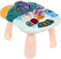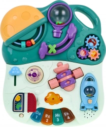Osvetljene orglice, melodije, zobniki, drsniki, kroglice in snemljiva raketa ohranjajo pozornost ter razvijajo fino motoriko, vid in sluh.