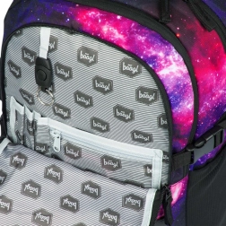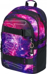 BAAGL Skate Galaxy je premišljeno zasnovan šolski nahrbtnik za učence, ki želijo praktičnost in slog. Tri samostojne komore olajšajo pregledno shranjevanje učbenikov in zvezkov, ne manjka notranji organizator in oblazinjeni žep za 15" prenosnik ali tablico. Sprednja stran je opremljena z dvema trakovoma za pritrditev skateboarda, tako da imate desko vedno pri roki.