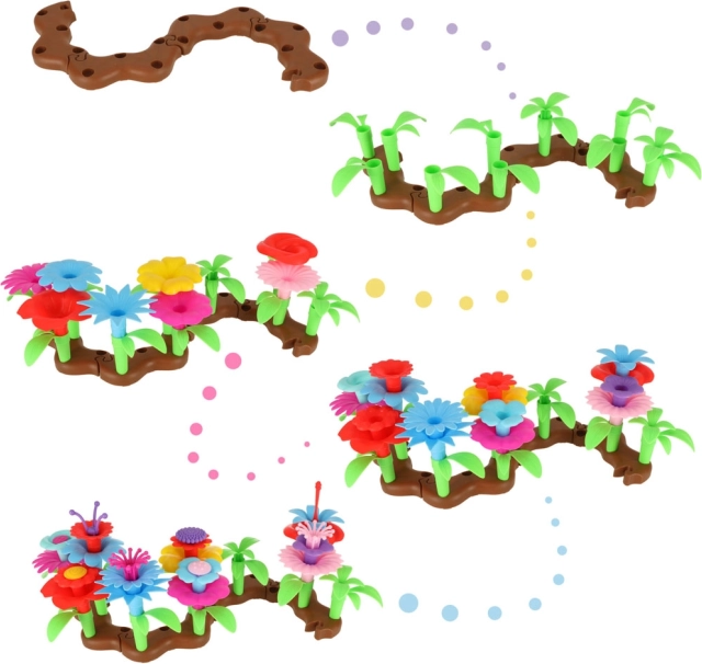 Igranje s tem kompletom spodbuja otroško kreativnost in razvoj različnih veščin, vključno z fino motoriko ter intelektom. Ustvarjanje čudovitih šopkov pomaga razvijati koncentracijo, prstno natančnost in koordinacijo oko-roka.