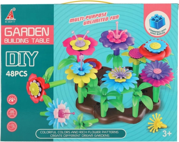 Kreativni komplet cvetličnega vrta je idealno darilo za male gradbenike. Zahvaljujoč barvitim kosom lahko otroci zlahka ustvarijo različne vrtove ali čudovite šopke. Komplet vsebuje 48 kosov, kar zagotavlja ure zabavnega sestavljanja!