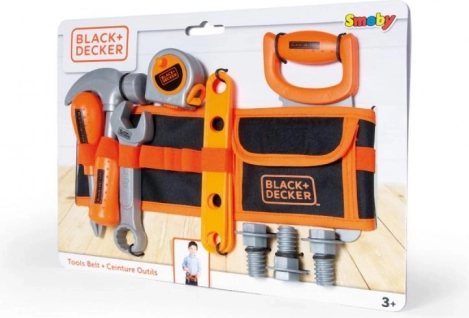 Pas za orodje z nastavljivim trakom v licenci Black & Decker. Vključuje 14 kosov dodatkov: žaga, izvijač, kladivo, kombinirani ključ, meter, 3 vijaki, 3 ploščate spojke in 3 matice. Z odlagalnim žepom. Dimenzije: 44 x 10 x 6 cm.
