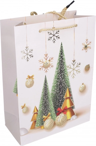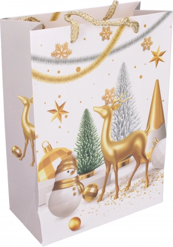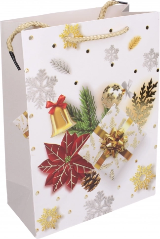 Lepa božična darilna vrečka v velikosti L (31×40×12 cm) za popolno zavijanje daril s štirimi različnimi motivi.