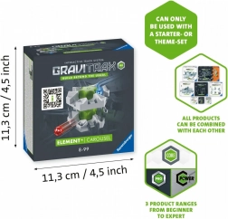 Vrtiljak je popolnoma združljiv z vsemi seti GraviTrax in GraviTrax PRO, zato lahko svojo progo skoraj neskončno razširjate. Ustvarjajte večnivojske konstrukcije, testirajte hitrost in trajektorije ter spremljajte, kolikokrat vašim kroglicam uspe prevoz skozi vrtiljak.