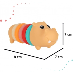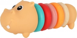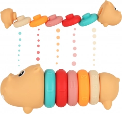 Ta barvita senzorična sestavljanka v obliki povodnega konja združuje igro in učenje. Številke in matematični simboli na obročkih spremenijo vadbo prstkov v zabavno odkrivanje osnov matematike. Mehak, varen silikon je prijeten na dotik in idealen za majhne roke.