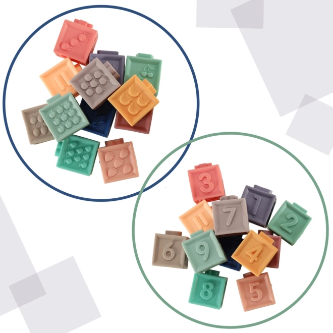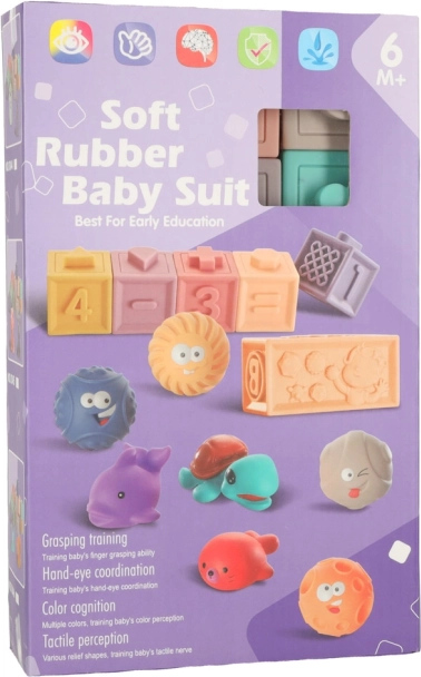 Ta senzorični set združuje zabavo in učenje v enem. Mehke silikonske kocke s številkami in znaki motivirajo otroke k prvim izračunom, medtem ko raznolike teksture in reliefi razvijajo tip in osredotočenost. Žogice in kocke so idealne za gradnjo stolpov, razvrščanje in prosto igro.