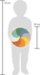 To dizajnersko leseno puzzle v modernih barvah prinaša svobodno igro v duhu Montessori. Otroci vadijo razvrščanje, sestavljanje, ustvarjanje vzorcev in logično razmišljanje. Po sestavi nastane impresiven motiv mandale, ki lahko služi tudi kot dekoracija otrokove sobe.