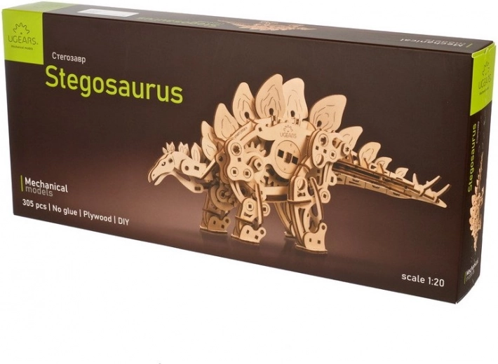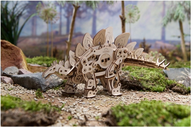 Z leseno mehansko sestavljanko stegozaver UGEARS si lahko sestavite svoj hodni model klasičnega dinozavra. Ta model ne zahteva lepila ali posebnega orodja – dovolj je, da lesene dele sestavite po podrobnih navodilih v enajstih različnih jezikih.