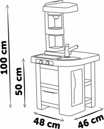 Z višino delovne površine 50,5 cm je kuhinja dovolj velika, da nudi obilo prostora za igro. Izdelano v Franciji; Smoby prispeva k razvoju otroške domišljije in samostojnosti.