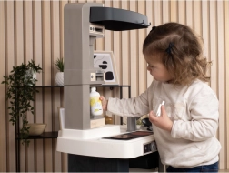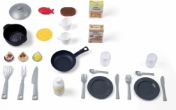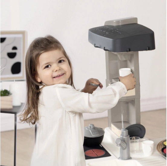 Elektronska kuhinja Smoby mini Tefal Studio je opremljena z zvočnimi učinki, ki povečajo občutek realistične igre. Vključuje štedilnik s kuhalno ploščo, napo, pečico, hladilnik, aparat za kavo s kapsulami, aparat za gaziranje in ponev.