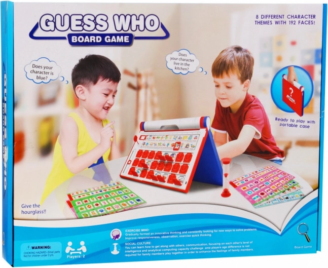 Pomirite se iz oči v oči, izberite tajni lik in ga s pametnimi vprašanji razkrijte prej kot nasprotnik. Nova izdaja prinaša svežo grafiko in barvno označene plošče za rdečo in modro ekipo, da je igra pregledna in dinamična.