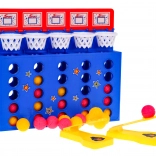 | | Arkadna igra štiri v vrsto je namenjena otrokom od 4. leta dalje. Pravila igre so zelo preprosta: z žogico morate zadeti enega od štirih košev tako, da se žogice enake barve razvrstijo v vrsto – vertikalno, horizontalno ali diagonalno. Kdor prvi razvrsti v vrsto 4 žogice enake barve, zmaga. Kljub videzu to ni lahka naloga in za zabavo bo poskrbelo veliko vznemirjenja. |