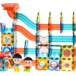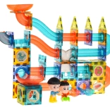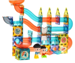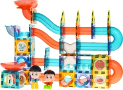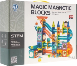 Odkrijte svet ustvarjalnosti s tem barvitim kompletom, ki vsebuje 128 magnetnih delov. Ta gradbeni set omogoča ustvarjanje steze za kroglice v poljubni postavitvi. Deli so izdelani iz kakovostnega materiala, so gladki in skrbno obdelani. Zahvaljujoč vgrajenim magnetom se zlahka povezujejo in zagotavljajo stabilnost konstrukcije. Del pakiranja je slikovni priročnik za sestavljanje primerov stez.