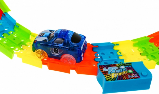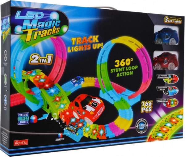 Svetleča dirkalna proga za otroke 3+ z LED avtomobilčki, zankami 360°, nadvišanji, 166 delov