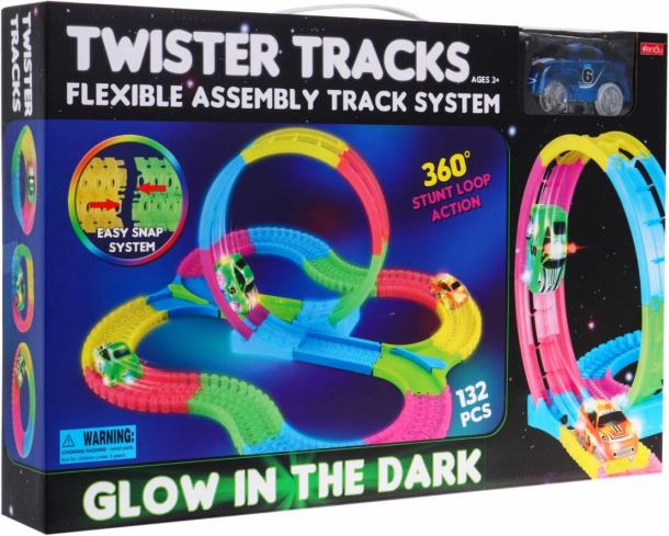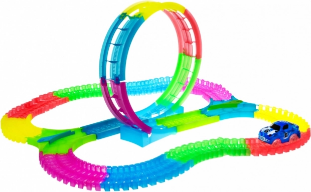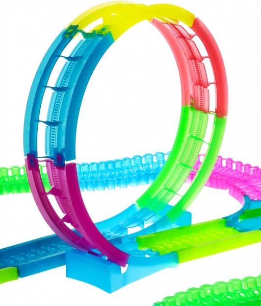 Ta velika svetleča dirkalna steza je primerna za otroke že od 3 let. Deluje fluorescenčno in v temi čudovito sveti, kar skupaj z LED osvetlitvijo avtomobilčka ustvarja osupljive učinke. Enostavna montaža in preprosto upravljanje jo naredita odličen dodatek vsaki otroški igri.