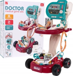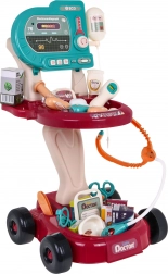 Otroci se lahko igrajo z zdravniškim vozičkom, ki je enostavno prenosljiv zahvaljujoč kolesom. Ta komplet razvija domišljijsko igro in pomaga otrokom odkrivati svet medicine.