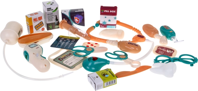 Ta komplet vsebuje celoten nabor orodij, potrebnih za vaše male zdravnike v njihovih vlogah.