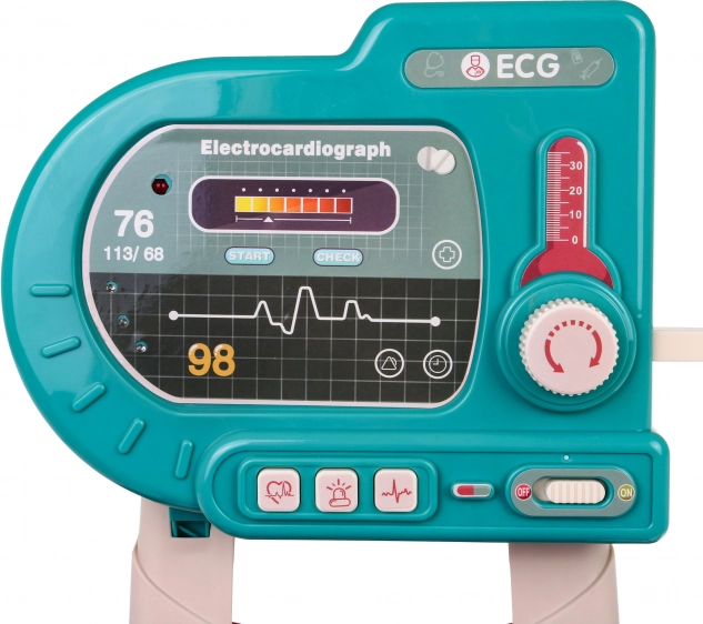 Otroci lahko uporabijo EKG ploščo, stetoskop, termometer in druge instrumente za realistično igro na zdravnika.